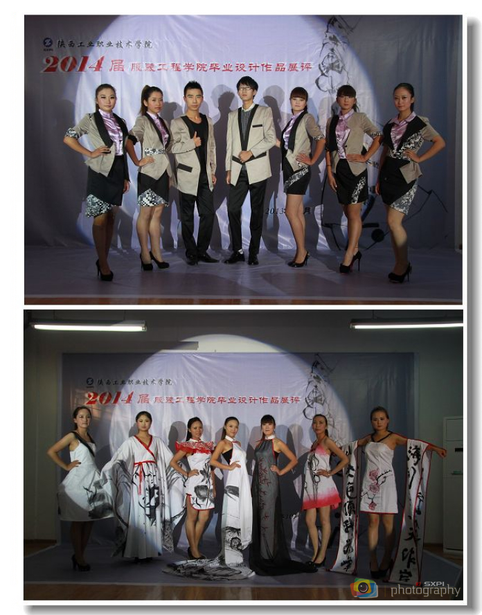 根据教学工作安排,结合2013年度学生创新基金项目,服装工程学院自今年3月份启动毕业设计,组建以服装设计教研室为主的毕业设计指导小组,反复研讨任务书,四次易稿,确定了以款式设计、制作为主要内容毕业设计任务,从设计选题、款式设计、面料采购、成品制作等流程精心指导,并积极与企业联系,使2014届毕业设计作品实用性明显增强。特别是作品《释放青春》紧扣我省工装生产实际,采用应用新型面料与工艺,凸显了服装的功能性与实用性;作品《白领职业装》活跃中不失稳重、庄重又不失时尚,受到了相关企业的青睐;作品《水墨丹青》、《族·韵》、《溪山兰若》融民族文化与时尚元素于一体的设计理念,受到了业内人士的充分肯定。