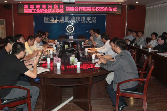 9月23日上午,高等教育出版社与我院“十二五”战略合作框架协议签字仪式在崇文楼九楼会议室举行。出席签字仪式的有高等教育出版社副社长陈建华,高职出版事业部总经理徐刚,高职出版事业部机械土建分社高级编辑毛红斌、李文轶,高职出版事业部市场部区域经理鲁巍,陕西省教学服务中心主任李双喜、院校代表马强,我院院长崔岩、副院长王晓江、副院长王津,教务处处长、基础部部长及各二级学院院长参加了会议。