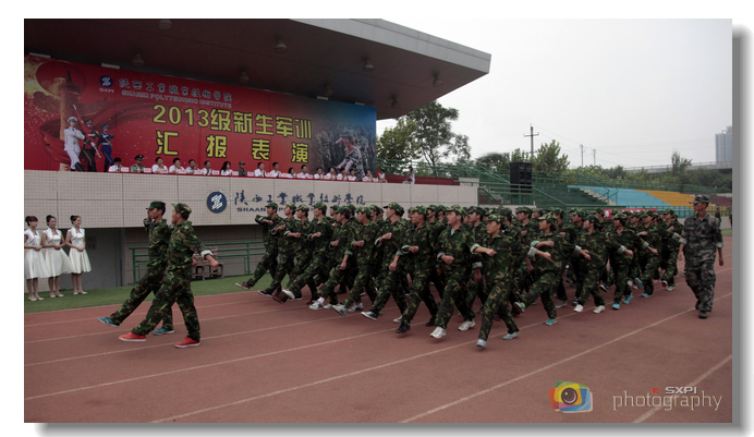 我院2013级新生进行军训汇报表演