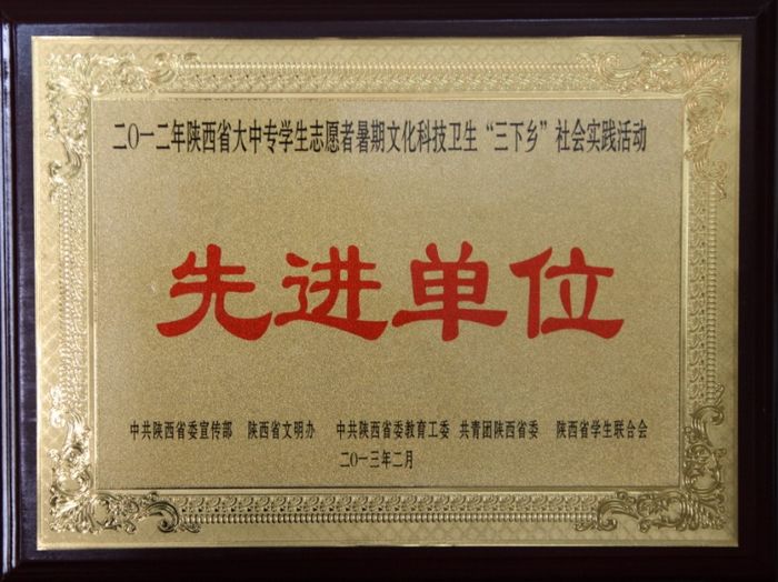 同时,院团委被授予“2012年陕西省大中专学生志愿者暑期文化科技卫生‘三下乡’社会实践活动先进单位”称号,三支服务队及三名志愿者分别被授予“优秀团队”及“先进个人”称号。