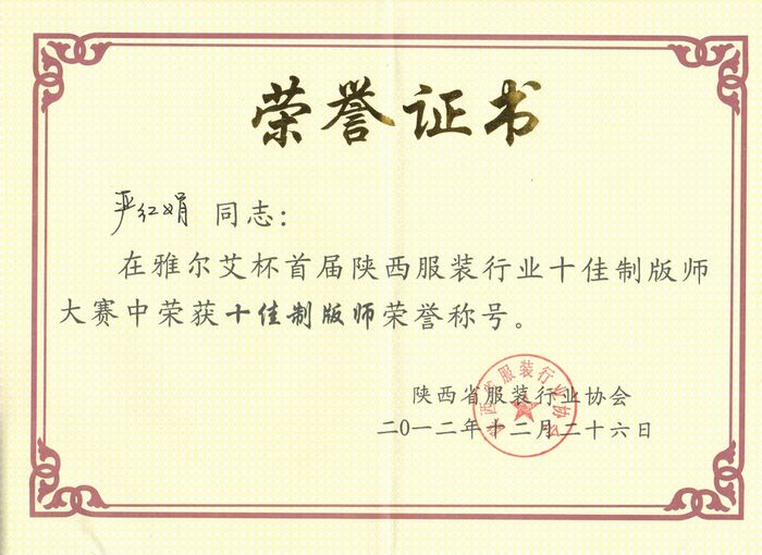 我院学生严红娟获得“陕西省服装行业十佳制版师”称号