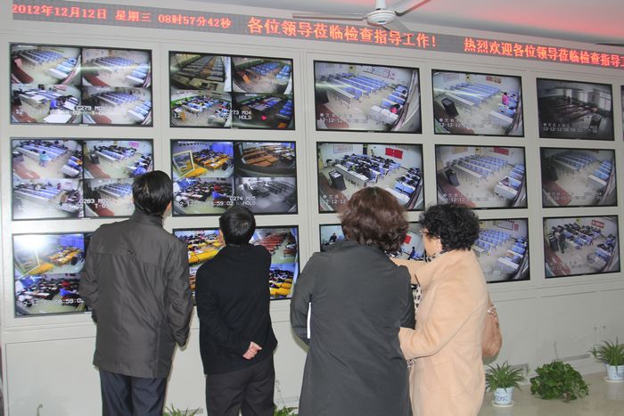 各位领导观摩教务处标准化考场监控室