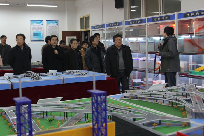 各位领导观摩土木工程学院建筑构造实训室