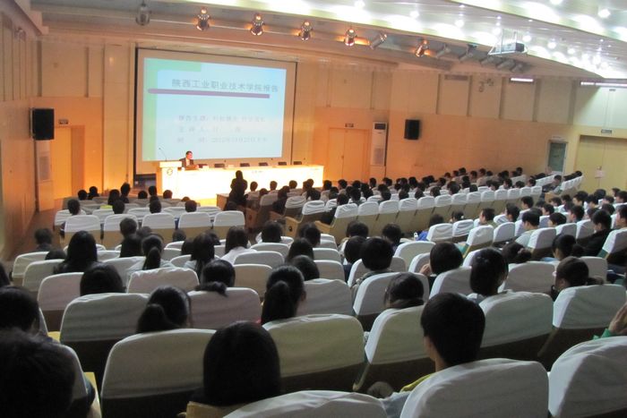 10月23日下午,我院邀请咸阳亿龙地产营销经理、西安博朗置业有限公司营销总监付源为400余名学生作题为《轻松就业、快乐成长》的主题讲座。该讲座由就业指导处主办、电气工程学院承办,就业指导处副处长郝军、电气工程学院总支书记万可顺、学工办主任白国政参加了讲座。讲座由万可顺主持。