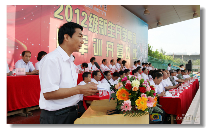 会上,崔岩同志首先对2012级6200余名新生的到来表示祝贺和欢迎,向承训部队的首长和教官表示感谢。在回溯了我院的发展历程及近年来在校园基本建设、教学质量工程和对外交流合作中取得的成绩后,他指出,同学们在校的三年时间,正是学院抢抓机遇、加快发展、再铸辉煌的关键时期,学院正朝着建设省内领先、国内一流、国际知名高职学院的目标迈进,大家都将是这一历史的见证者和参与者,人人有责,且责无旁贷。他希望同学们能以焕然一新的精神风貌和良好的学风,为学院发展贡献自己的聪明才智,不辜负时代赋予自己的神圣使命。为此,他向2012级新生提出四点希望和要求,一是要坚持锻炼身体,树立“健康第一”的观点,筑起坚固的“健康堡垒”。二是要努力刻苦学习,不断提高自身的综合素质。充分利用学院良好的学习条件,全身心地投入到学习中去,用刻苦自觉的精神、坚忍不拔的意志、辛勤的汗水浇灌出成功之花。三是要热心承担班集体等社会性工作,积极参加各种校园文化活动和义务劳动,努力培养自己的兴趣、爱好和特长,力促自身的个性品质、知识技能、习惯养成、社交能力等和谐发展。四是要加强思想道德品质修养,积极争取,明确目标,力争把自己锻炼成一名综合素质较高,专业能力较强的合格毕业生。