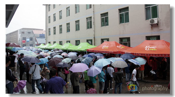 雨中的校园人头攒动