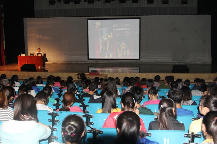 郑林科教授从多个角度,以诙谐幽默的方式向老师和同学们介绍了积极心理学的形成和发展,并通过一系列真实数据和发生在大学校园的生动案例,说明积极心理学的开发对大学生心理健康的重大意义。最后,郑教授还对同学们进行了积极心理成长训练,手把手的教大家如何通过积极的心态和思维去解决常见的心理问题。整个过程台上台下互动不断,笑声连连。