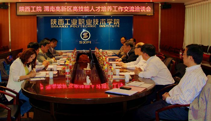 4月26日下午,渭南市高新区党工委委员、党群工作部部长谭文德一行六人来我院共商高技能人才培养工作,在崇文楼九楼会议室召开了座谈会。邓志辉书记,王晓江副院长及相关部门的领导参加了座谈。会议由王晓江主持。