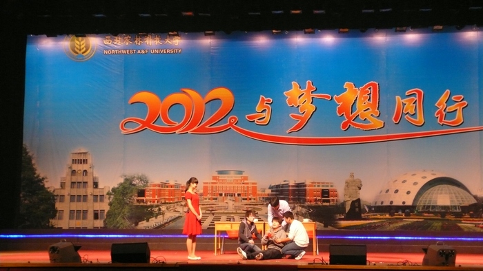 12月31日晚,我院获陕西省第三届大学生艺术展演一等奖、陕西省第三届大学生戏剧节优秀表演奖的小品《一张饭卡》应西北农林科技大学邀请,参加了该校在北校区绣山活动中心举行的2012年元旦晚会——“与梦想同行”大型文艺演出,西农大党委书记张光强、校长孙其信、中国工程院院士山仑研究员、我院学生工作部部长王超联和该校两千余名师生共同观看了演出。