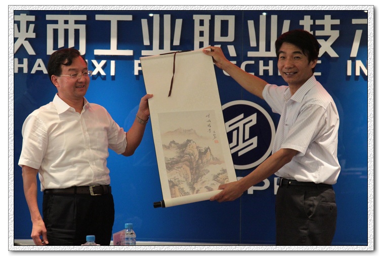 郑伟强团长认为我院历史积淀雄厚、办学成果丰硕,为装备制造行业培育了大批优秀人才。郑伟强团长也希望双方不断在课程建设、校企合作、师资培训等方面加强探讨与交流。随后,郑伟强团长代表甘肃省高职院校管理干部考察团向我院赠送了字画艺术品,祝福我院为推动中西部高职教育教学改革贡献新的力量。