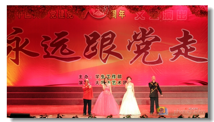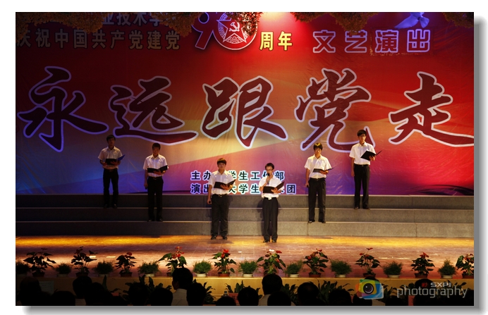 为热烈庆祝中国共产党建党九十周年,6月28日下午,由学生工作部主办的“永远跟你走”——庆祝中国共产党建党90周年文艺演出在我院明德堂隆重举行。党委书记邓志辉,院长崔岩、全体党员干部及千余名学生观看了演出。