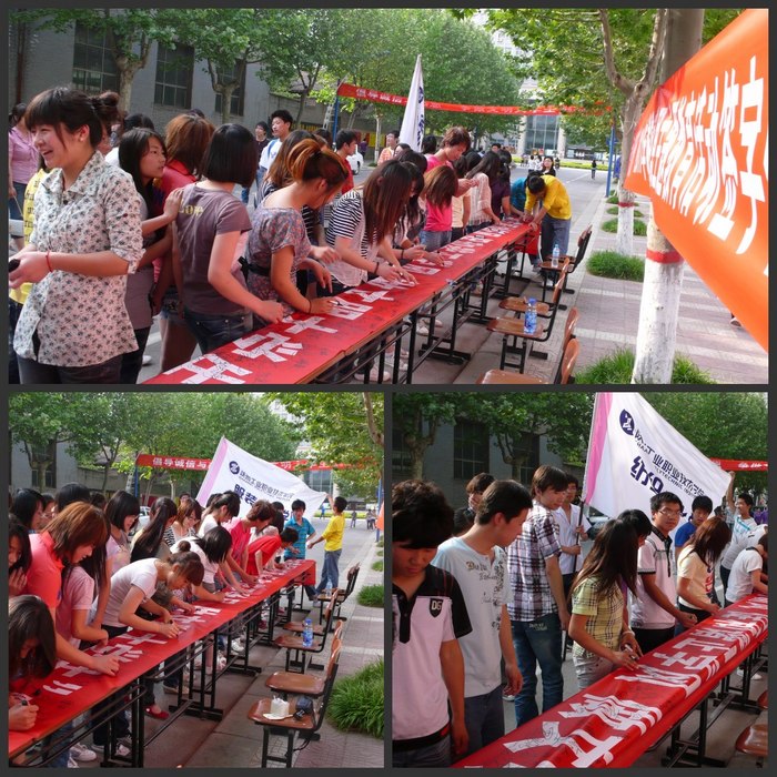 为使广大同学进一步深入了解国家学生资助政策和我院的各项资助项目,强化学生知恩感恩意识,培养诚实守信的品质,根据2011年大学生“诚信与感恩”主题教育系列活动方案,5月5日下午,院学生资助管理中心在成才大道举行“感恩于心,回报于行”的签名活动。