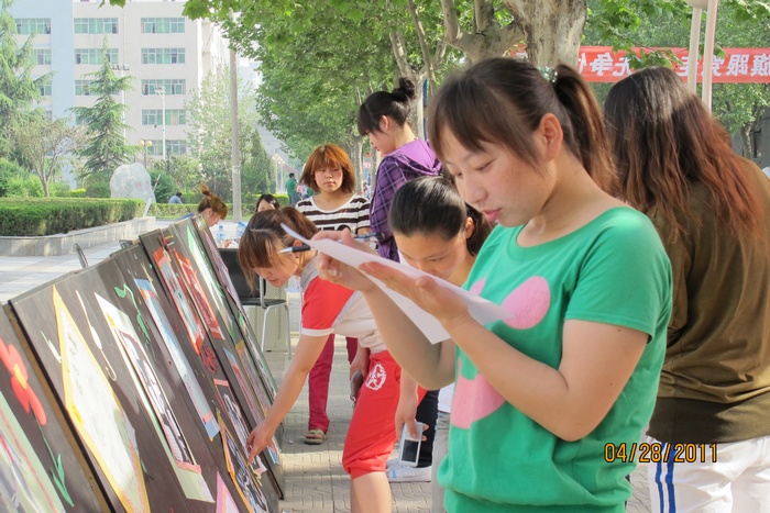 4月28日下午,服装艺术学院承办的betway第六届技能竞赛月的大赛项目“陕西工院学生校服设计大赛”入围作品公开展示评选活动在成才大道举行。