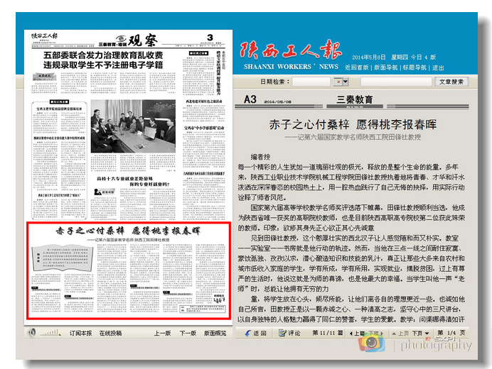 陕西工人报—记第六届国家教学名师陕西工院田锋社教授
