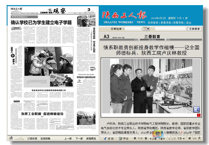 陕西工人报—情系职教勇创新 投身教学作楷模