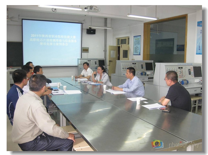 5月6日,由电气工程学院承办的2011年全国职业院校技能竞赛“芯片级检测维修与信息服务”陕西赛区选拔赛预备会,在行知楼变频实训室如期举行。报名参赛的陕西航空职业技术学院、西安铁路职业技术学院及我院代表一起讨论了竞赛时间、竞赛方案、命题范围、及评分原则等,并邀请陕西金顿网络系统工程有限公司技术人员参会,组成了本项竞赛的组委会和裁判组,保证竞赛在公平、公正、公开的情况下顺利进行。会议决定5月16日在我院正式举行选拔赛。教务处实训科科长陈开君、电气学院卢庆林、万可顺、吉武庆等参加了会议。