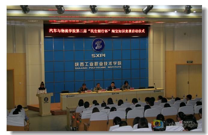 5月4日下午,汽车与物流学院主办的第二届“民生银行杯”淘宝知识竞赛在学术会堂开赛。中国民生银行西安分行长乐路支行个人金融部经理程伟、汽车与物流学院党总支书记王平勋及该学院师生和参赛选手等300余人参加了开幕式。