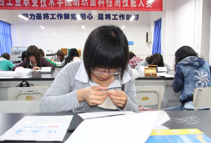 5月14日,我院第三届纺织面料检测技能大赛决赛拉开帷幕。共有来自现代纺织技术专业和纺织品检验与贸易专业的52名学生参加了决赛。比赛按照纺织品检测操作规程组织,重点考核了学生的动手操作能力。在比拼了国家职业标准规定的应知应会理论基础知识后,同学们现场完成了“拆纱、测长、称重、计算、测密”等检测环节。经过3天激烈角逐,大赛评选产生一等奖3名,二等奖5名,三等奖7名。
