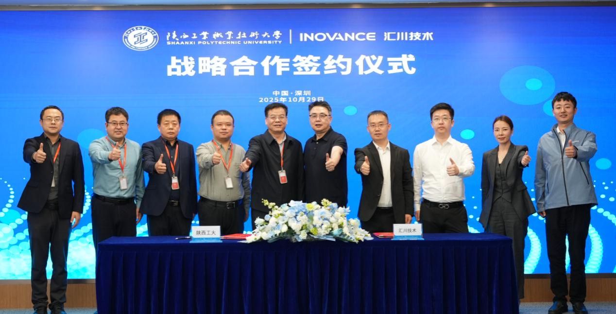 10月29日,校长刘永亮,教务处、校企合作处、电气工程学院负责同志一行5人赴深圳市汇川技术股份有限公司进行校企合作战略协议签约。深圳市汇川技术股份有限公司董事长、总裁朱兴明,全球行业管理中心副总裁段海峰及校企合作相关负责人员参加了本次签约仪式。