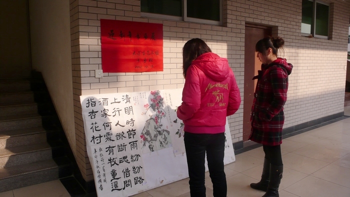 在新年来临之际,由我院大学生艺术团书画社举办的迎新年书画展于12月15日上午在明德堂南二楼拉开帷幕。